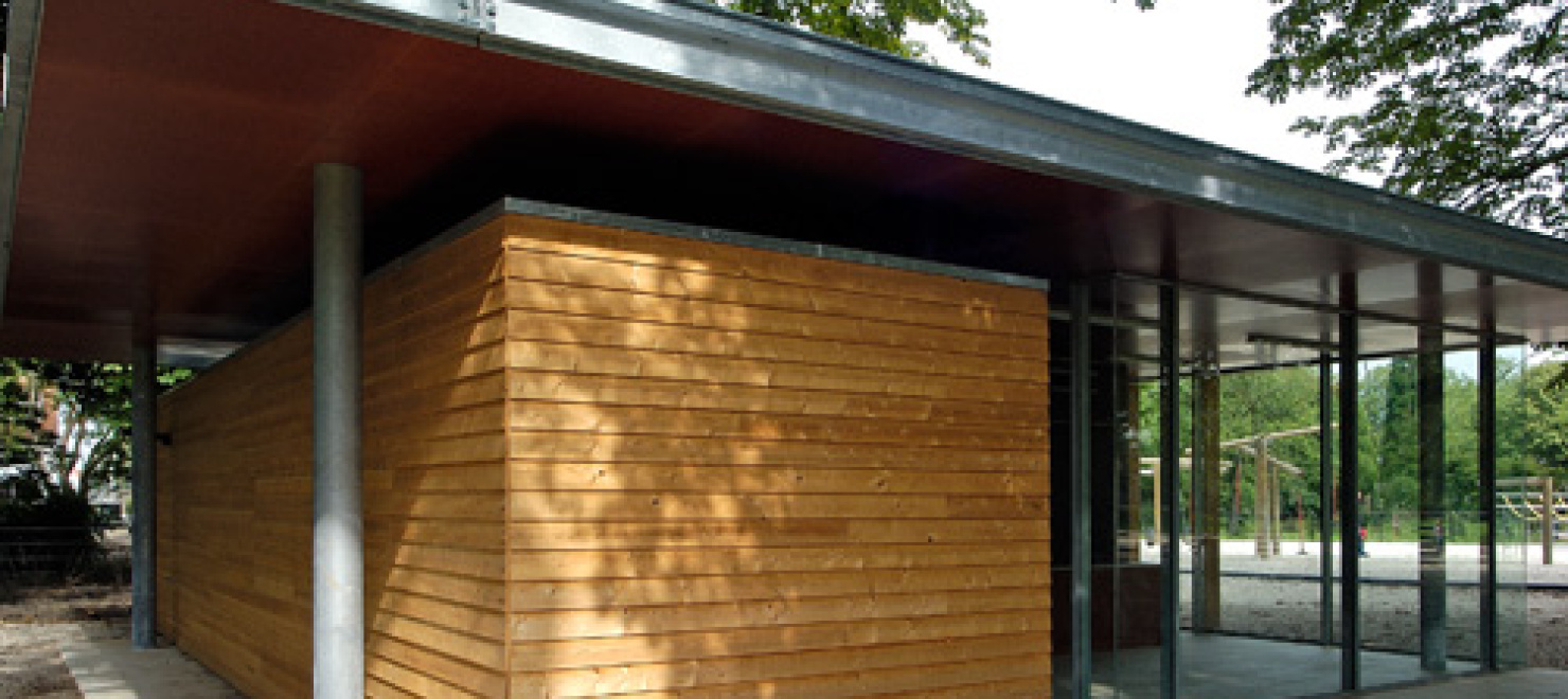 Het multifunctionele paviljoen in het Julianapark is de ontmoetingsruimte voor de medewerkers van de dierenweide, biedt toiletruimte voor de naastgelegen speeltuin en wordt gebruikt voor activiteiten van de jeugdtheatergroep De Berenkuil en de Oranje vereniging en biedt multifunctionele ruimte bij festivals en theaterevenementen. Het paviljoen wordt gekenmerkt door een eenvoudige organisatie, sobere materialisering en evenwichtige balans tussen open en gesloten gevels. De overkapping rust op vier kolommen. De binnenruimten zijn als losse doosjes onder het platte dak geschoven. zie verder INFO 2