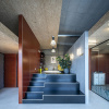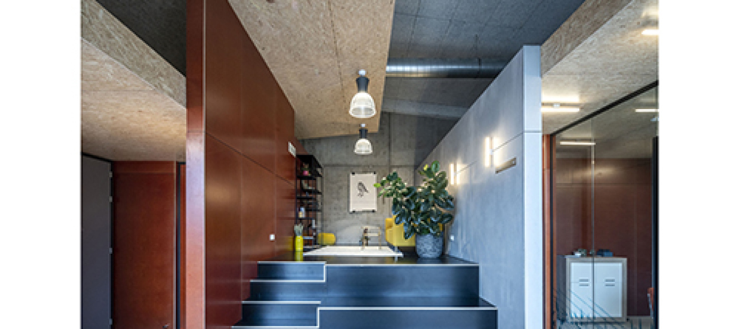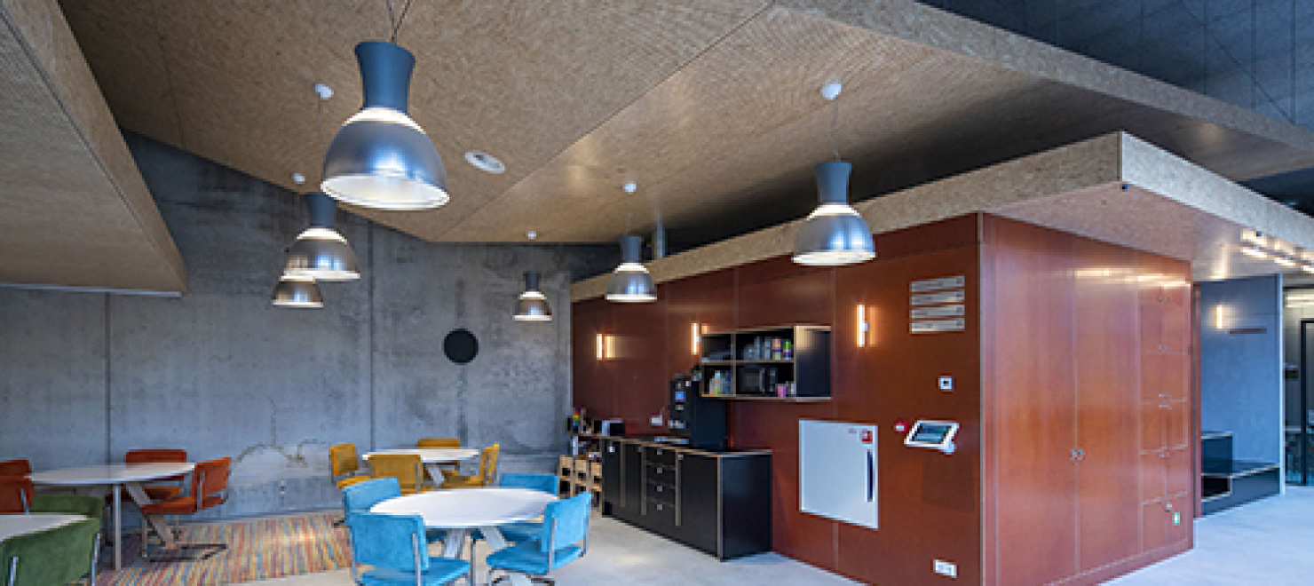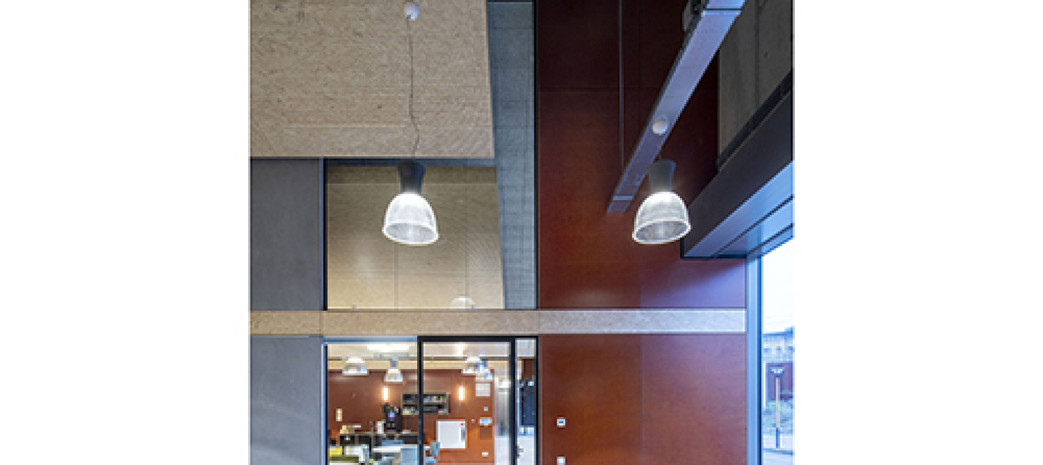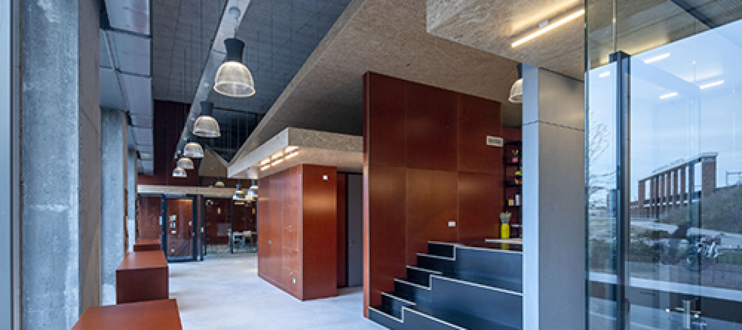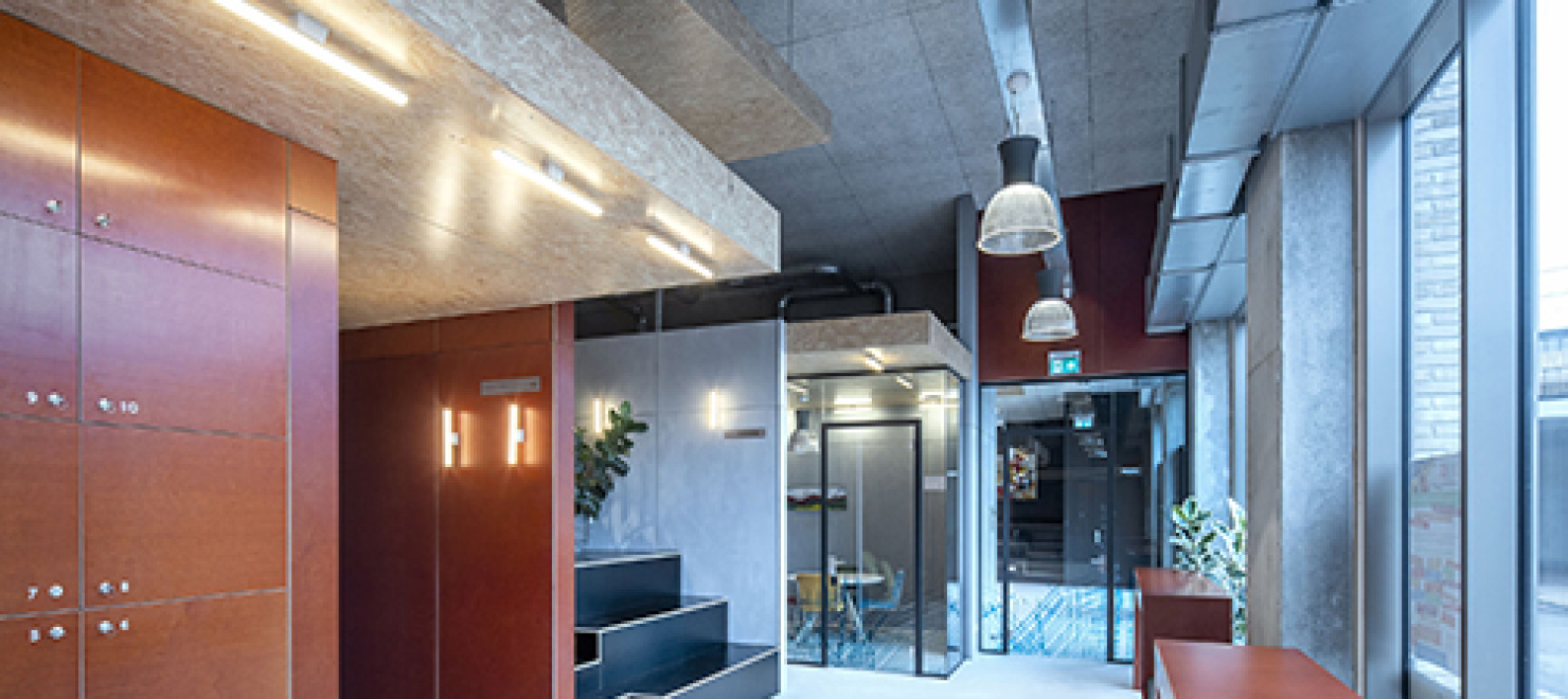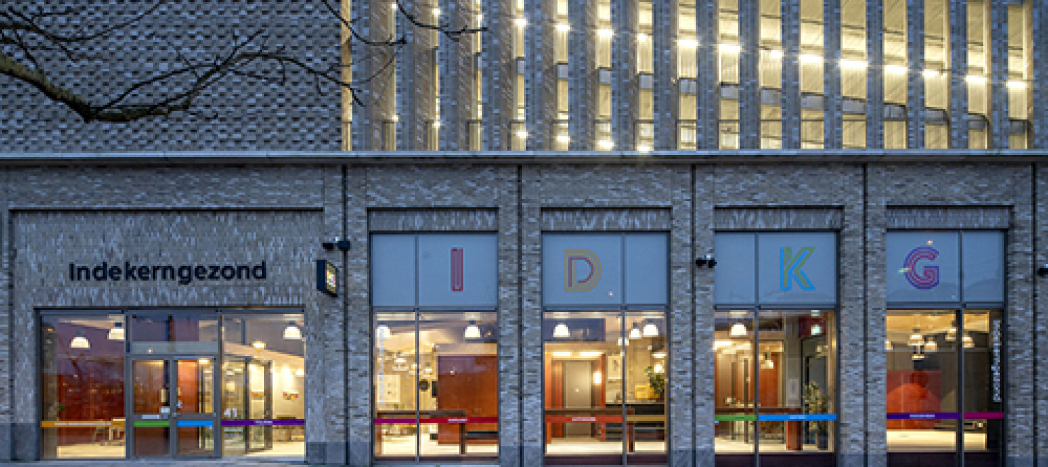 Indekerngezond is een centrale ontmoetingsplek voor de bewoners uit de wijk Leidsche Rijn en omgeving. Als bureau hebben we een betekenisvolle bijdrage mogen leveren aan dit initiatief van onze opdrachtgever Lister. Het ontwerp liep samen op met de vorming van het gedachtegoed van dit initiatief, een plek voor de buurt in het teken van positieve gezondheid. Het ontwerp geeft antwoord op de behoefte aan een uitnodigende, transparante ruimte die multifunctionele inzetbaar is. We kregen een casco betonnen huls tot onze beschikking van 300 m2 met een hoogte van 4,5 tot 6m. Het pand is in de breedte georiƫnteerd langs de gevel. De grote raampartijen hebben we ingezet als een enorme etalage voor dit buurtinitiatief. zie verder INFO 2 Intern is de afbakening van de ruimten ontstaan door grote schijven en haken te plaatsen van onderhoudsvrije materialen zoals betontriplex, natuurvezelcement, houtvezelplaat, staal en glas. Deze materialen bieden het pand een warme, doch robuuste aankleding. De uitgestrekte loop- en ontmoetingszone langs de gevel vormt een verbindende en transparante as. Het uitgestrekte, vrij hangende plafond is het tweede verbindende element. De ruimtelijke elementen creƫren in een dialoog een diversiteit aan ruimten. Die naar wens zowel intimiteit als een uitnodigende transparantie bieden voor de gebruikers. De ruimten zijn voor meerdere doeleinden geschikt gemaakt zoals ontmoetingen, workshops, lezingen, buurtinitiatieven, overleg, theater en bijeenkomsten tot 80 personen. Project: Inbouw in casco pand, Plaats: Kopenhagenstraat, Leidsche Rijn Utrecht, Opdrachtgever: Lister Utrecht, Hoofdaannemer: De Luit interieurbouw Almere, Omvang: bruto vloeroppervlak 300 m2, Ontwerp: januari 2018, Oplevering: oktober 2018