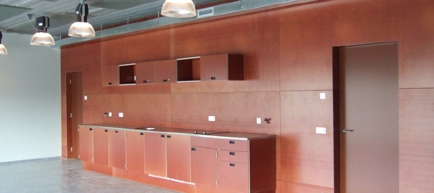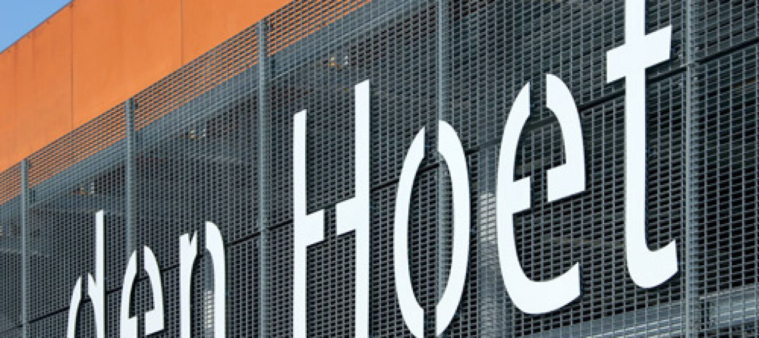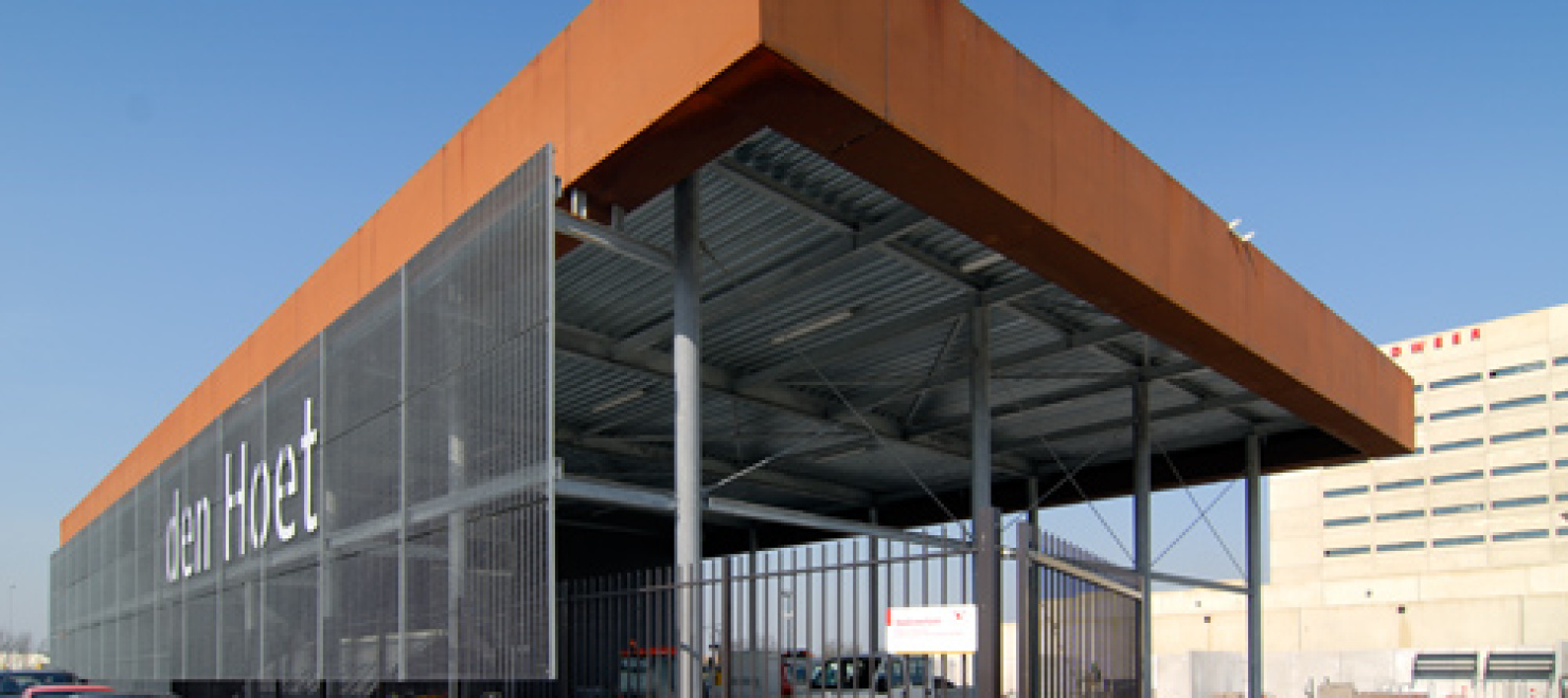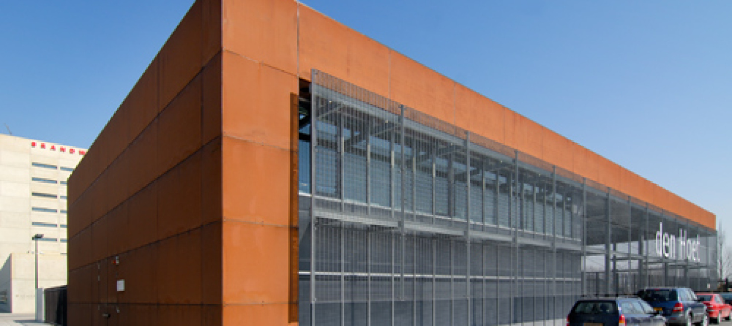 Wijkpost den Hoet huisvest de Stadswerken Groenvoorziening Leidsche Rijn. In de wijkpost zijn kantoren, vergader- en lunchruimte voor werknemers ondergebracht, zijn er bouwmaterialen en gereedschappen opgeslagen en staan de bedrijfsvoertuigen geparkeerd. Het ontwerp vat de verschillende programma’s letterlijk onder één dak. Een grote L-vormige overkapping van cortentstaal integreert de loods en kantoren tot één volume. Het strekmetalen scherm dat rondom het gebouw loopt, verbindt de overkapping met de kantoorgevel en houdt rommelige opslag uit het zicht. zie verder INFO 2 De kern van het gebouw, bekleed met betontriplex, ontsluit alle ruimten en vormt de centrale verkeersruimte met een groot daklicht en een robuuste trap. De stoere materialen van het gebouw zoals cortentstaal, strekmetaal en betontriplex zijn naadloos afgewerkt en volledig gedetailleerd.