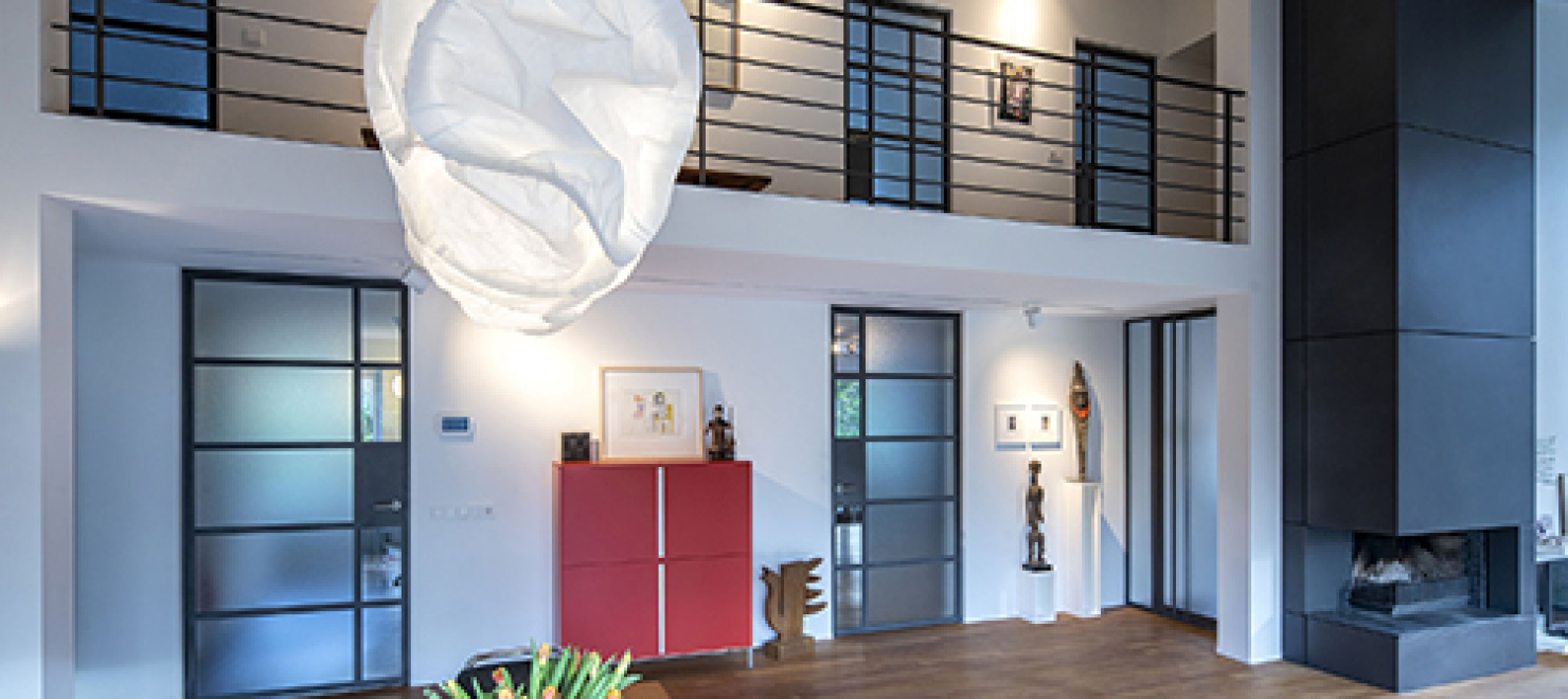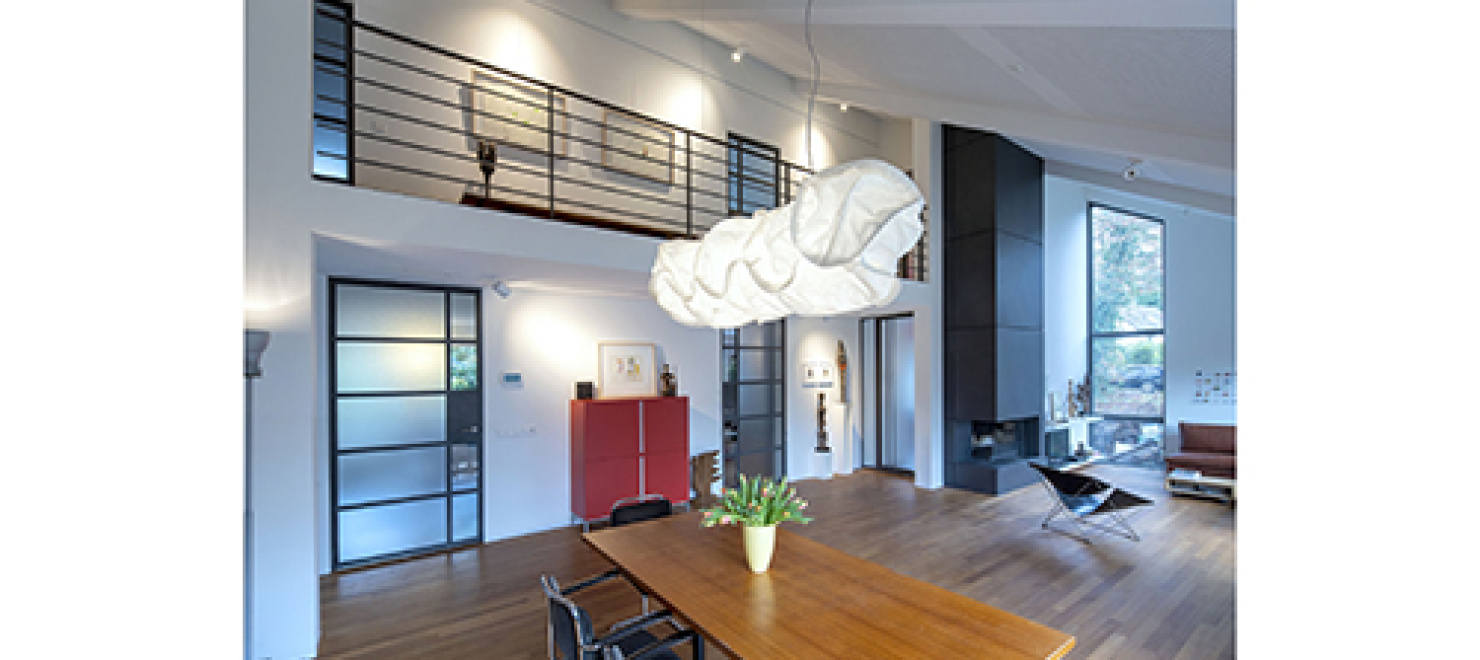 Het woonhuis in Leersum is oorspronkelijk ontworpen als een serie vrijstaande woningen in een bosrijke omgeving. De hoofdstructuur van de woning is een drive-in woning in twee lagen onder een dubbel lessenaarsdak. Het dak deelt het interieur in twee compartimenten. Een open compartiment geheel vrij van een indeling tot de nok en het andere deel in twee lagen, volledig ingedeeld en gesloten. De architectonische opdracht die we voor de verbouwing formuleerden was om de eigenschappen van de structuur te verhelderen en de ruimtelijkheid te maximaliseren. Er is stevig gesloopt totdat alle overbodige in- en uitstulpingen, welvingen, gedateerde en sombere materialen waren verwijderd. zie verder INFO 2 Het doorzicht onder de tweedeling in het dubbele dak werd verbeterd door aan de blinde zijde een nieuw gevelvenster toe te voegen van vloer tot het hoogste punt onder het dak. De galerij werd opgeschoond en voorzien van een open, transparant, horizontaal gedeeld stalen hekwerk. Waarmee de relatie tussen de twee compartimenten is versterkt. De open haard is als verticaal element gestileerd en opgestrakt met een stalen beplating. Er is een strakke esthetische afwerking aangebracht en weinig tot geen detail getekend. Wanden zijn voorzien van glad stucwerk, gesaust en de eiken vloer gerenoveerd. De museale uitstraling is een neutrale omgeving voor de indrukwekkende kunstverzameling geworden. Project: verbouwing woonhuis, Plaats: Leersum, Opdrachtgever: particulier, Hoofdaannemer: Bouwwbedrijf Morren B.V. Woudenberg, Omvang: bruto vloeroppervlak 280 m2, Ontwerp: Oktober 2015, Oplevering: mei 2016